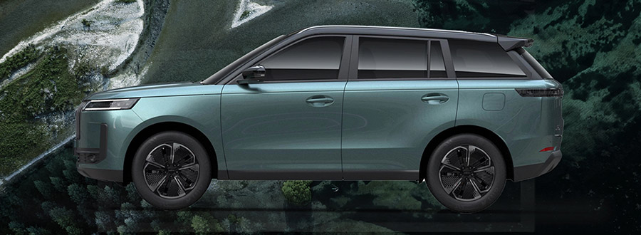 Ketika berpindah ke sisi samping, garis bahu yang tegas dan permainan dua warna antara bodi dan atap menciptakan kesan mirip dengan SUV premium Eropa, seperti Range Rover, yang menjadi inspirasi desain Jaecoo.